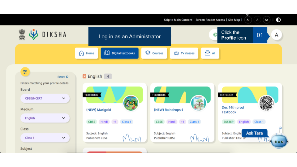 Log in to DIKSHA with administrator credentials.