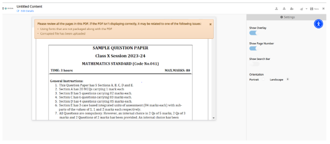Note: The PDF supports only noto-sans fonts of different languages while rendering on the mobile application. Refer Supported Font Types 2. Click Browse to select the desired file for upload from your local system (laptop, desktop, etc). You can alternatively Drag & Drop files from your local 3. Click Upload to upload the selected content |