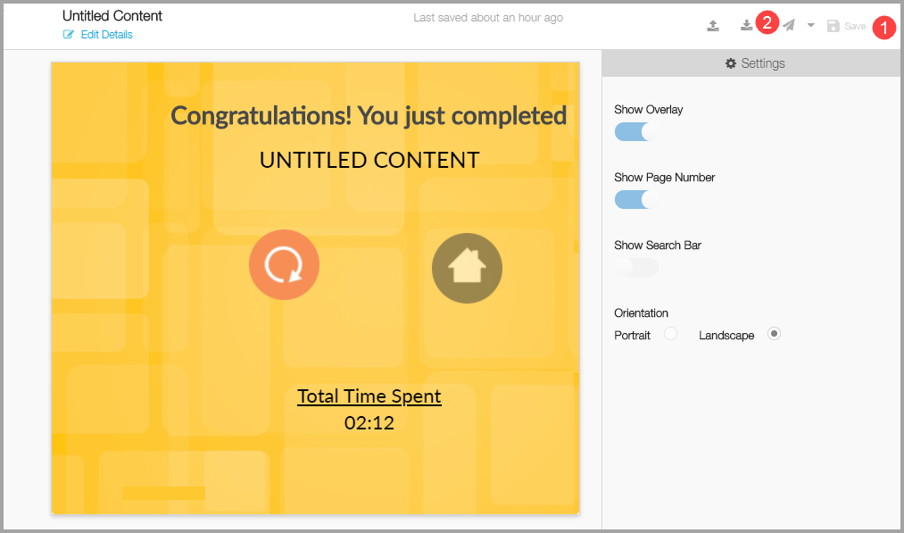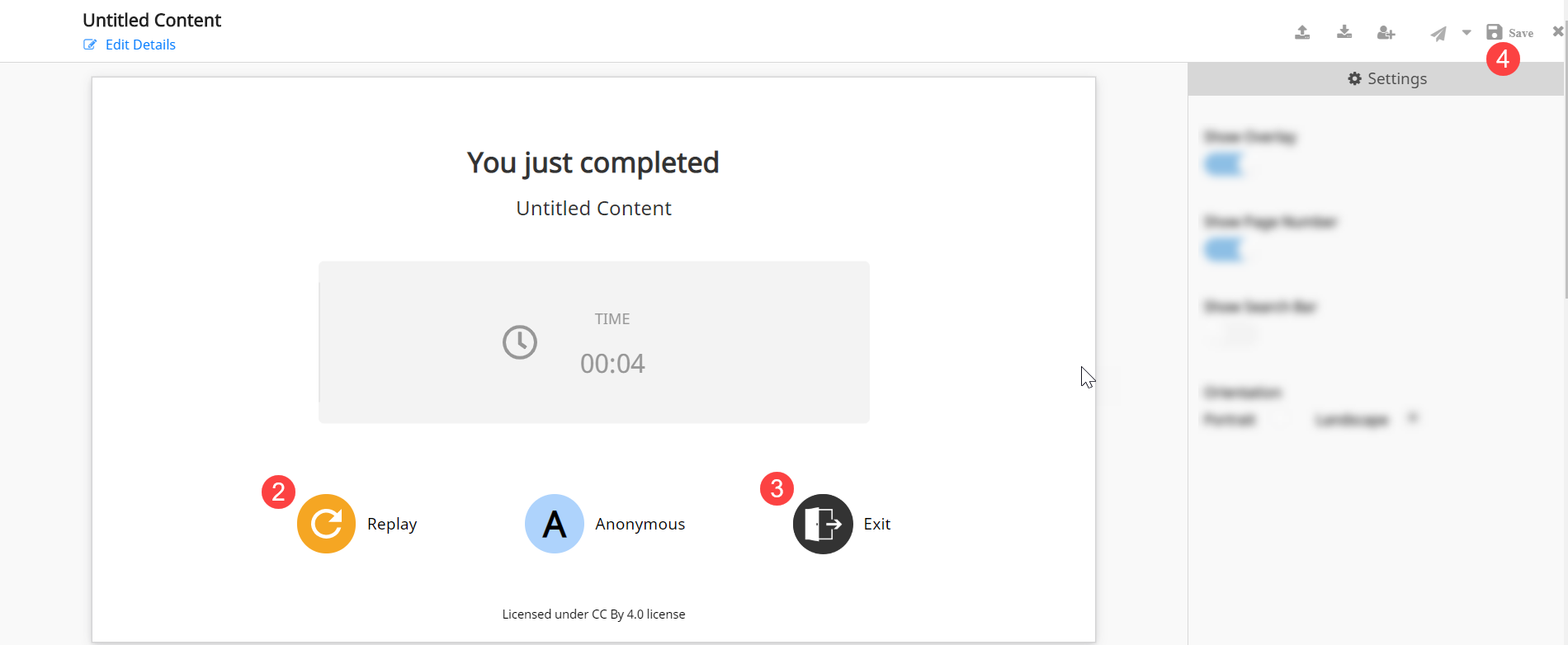 | After you finish playing the content, a message You just completed is displayed 2. Click Replay to replay the content 3. Click Exit to exit from the preview screen 4. Click Save to save the uploaded content |