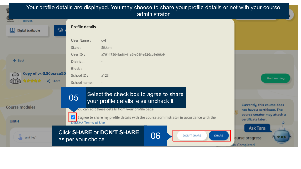 When you enrol for a course, you have the option to share or not share your profile data with the course administrator.
