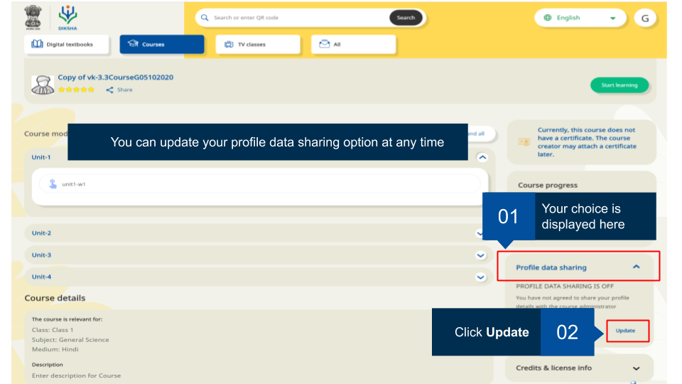 • 1.2 . Updating Profile Data Sharing Details