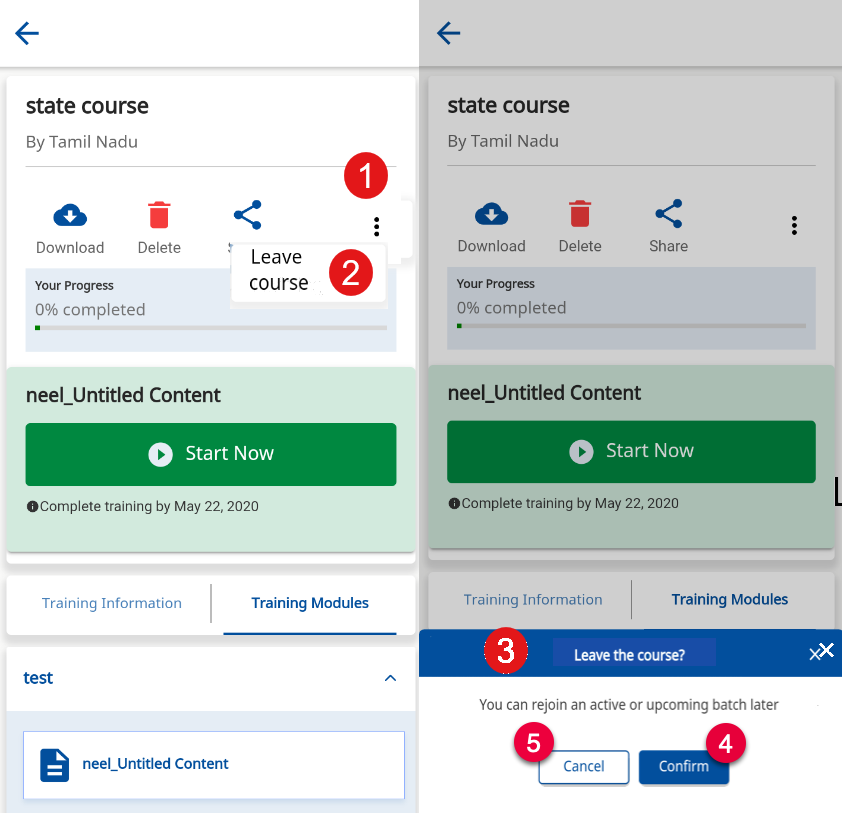 Users can leave a course under the following conditions: