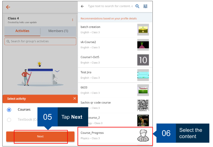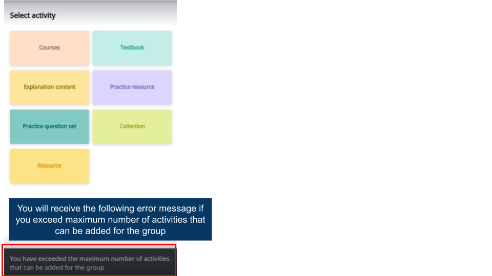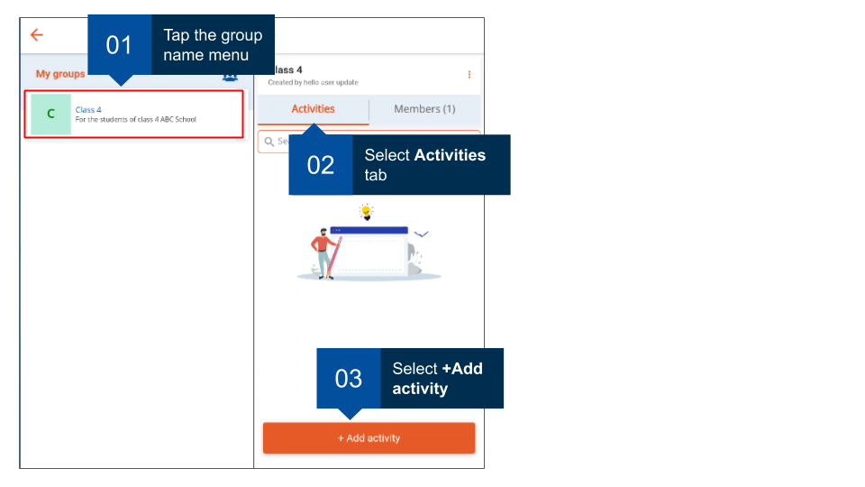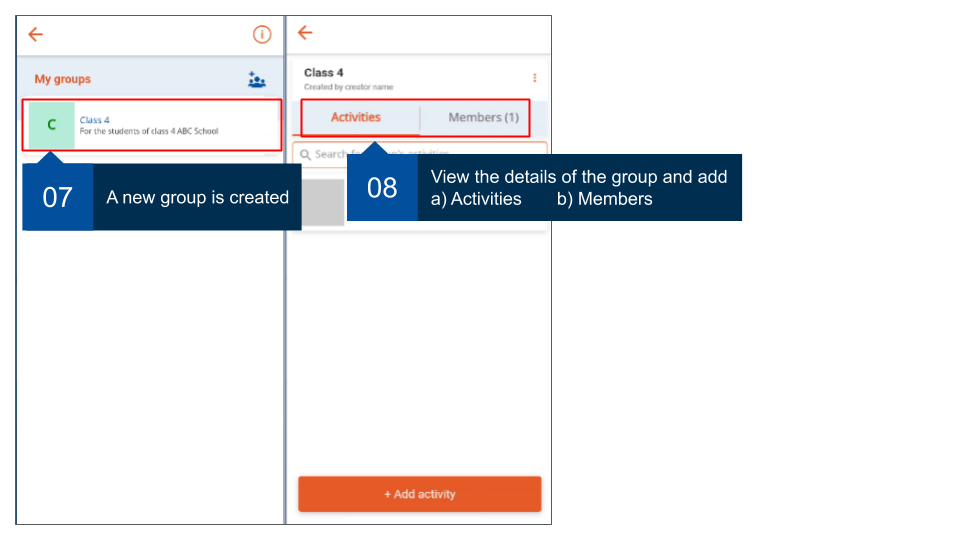 As a group administrator, you can add activities for the group. Courses too are added as activities. Members can join and complete these courses.