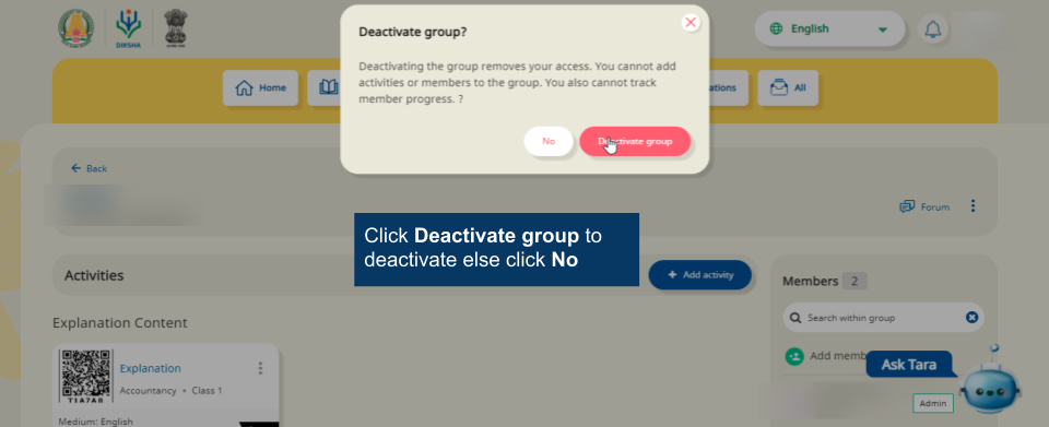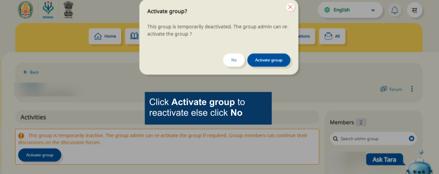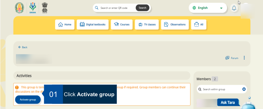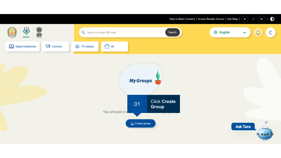 Note: It is mandatory to accept DIKSHA’s terms of use to create a group. An error message is displayed when trying to create a group without accepting the terms of use.