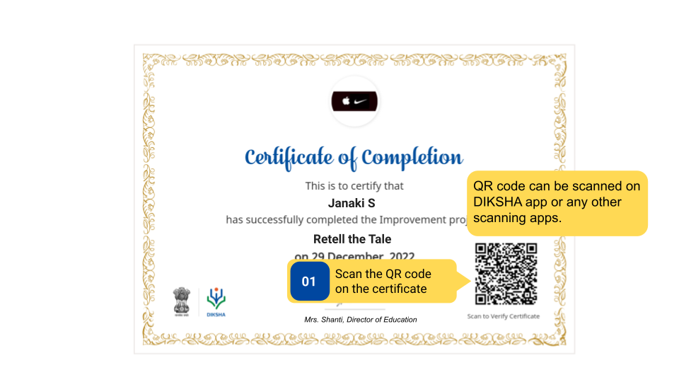 Scanning QR codes is a way to digitally validate the certificate and avoid any misuse and malpractice of the certificate.
